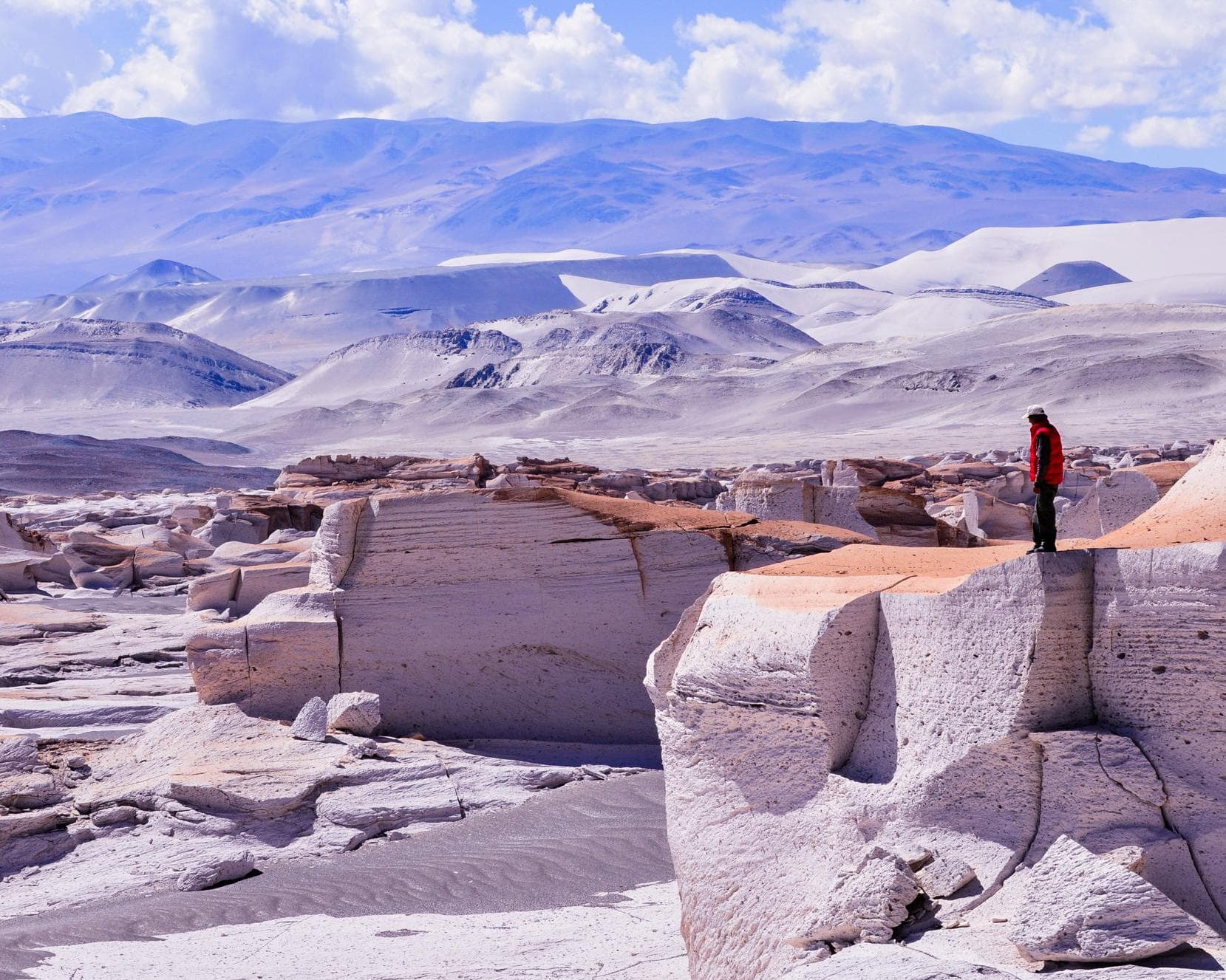 Salida desde Belén hacia El Peñón, pasando por la Quebrada de Belén, Puerto Viejo, Villa Vil, Barranca larga con ascenso a la cuesta de Randolfo donde se llega a los médanos de Randolfo (como opcional: se puede realizar una caminata en el médano), siguiendo el recorrido hacia el Campo de Piedra Pómez, noche en Antofagasta.